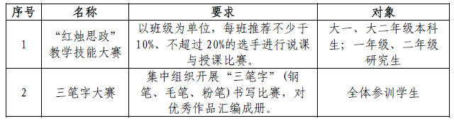 3.创新载体,注重实效。首次参训员工在本学年结束时,需提交一份教学微视频至辅导员处,微视频时长为7-10分钟。在技能竞赛模块表现优异者将优先推荐参加校级、省级、国家级相关比赛。