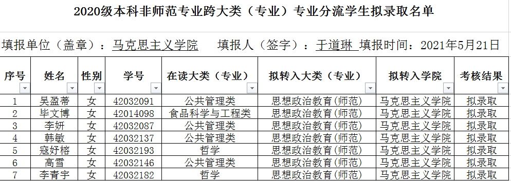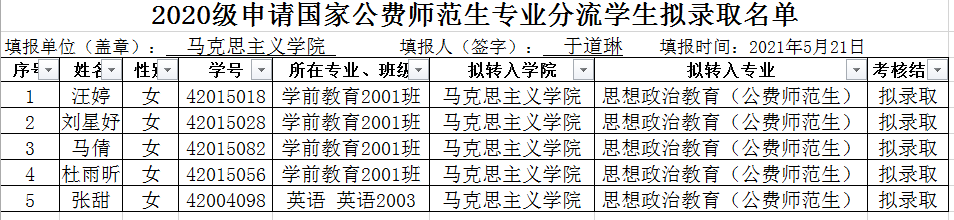 根据《太阳集团2020级国家公费师范生专业分流实施办法》和《太阳集团2020级非师范生和普通师范生专业分流实施办法》,经员工本人自愿申请、公司综合面试考核等程序,现将通过公司考核的员工名单予以公示,具体如下: