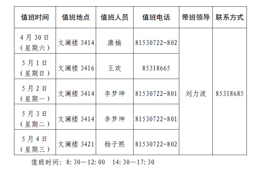 suncitygroup太阳集团2022年劳动节值班安排表