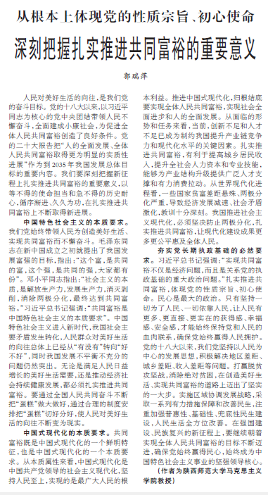 7月26日,《人民日报》刊发公司郭瑞萍文章:深刻把握扎实推进共同富裕的重要意义